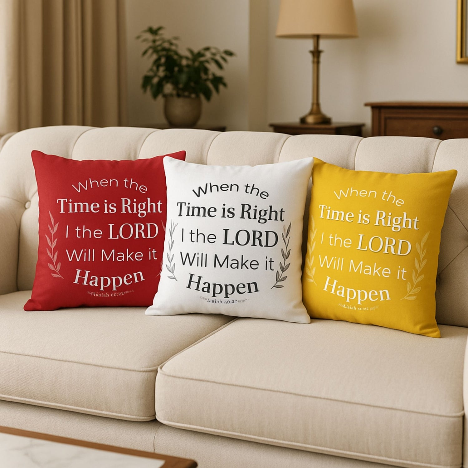 Our growing homeware collection begins with pillows featuring uplifting Christian messages designed to bring comfort and encouragement into everyday living. From there, the collection continues to expand with thoughtfully created homeware pieces that blend faith, function, and timeless style for every home.