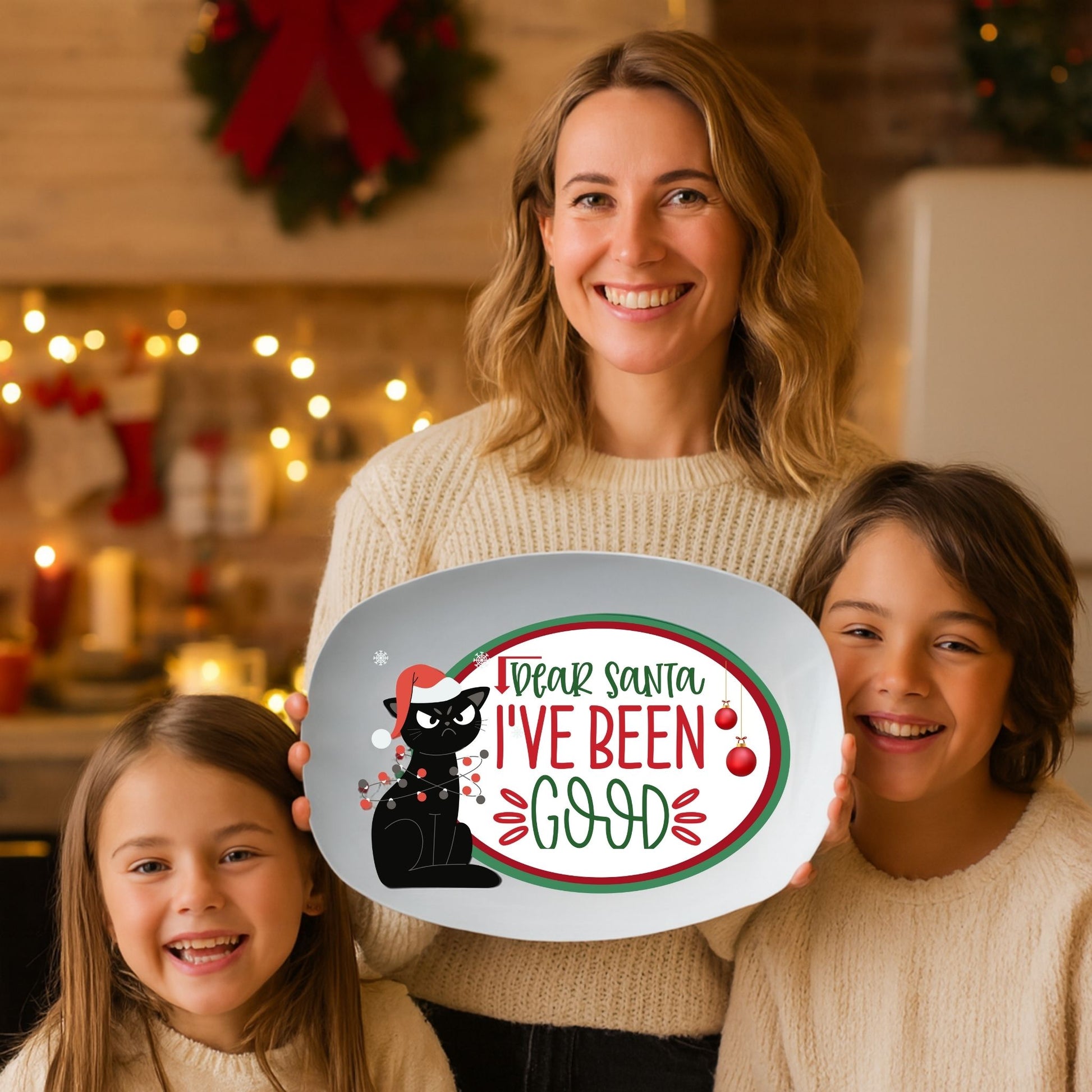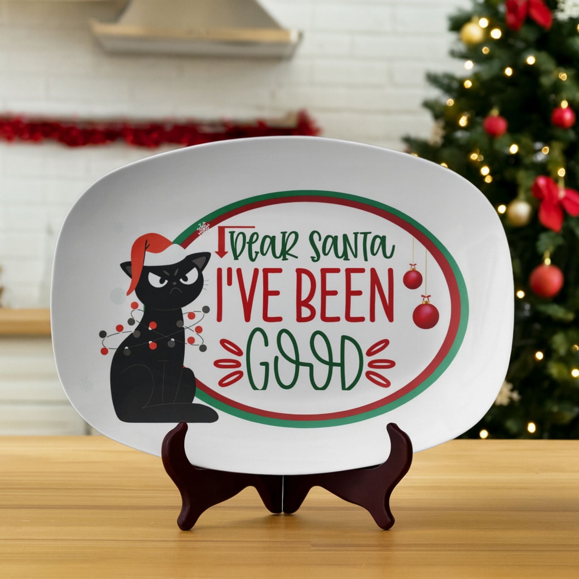 Funny Cat Christmas Tray – Dear Santa I've Been Good Party Platter