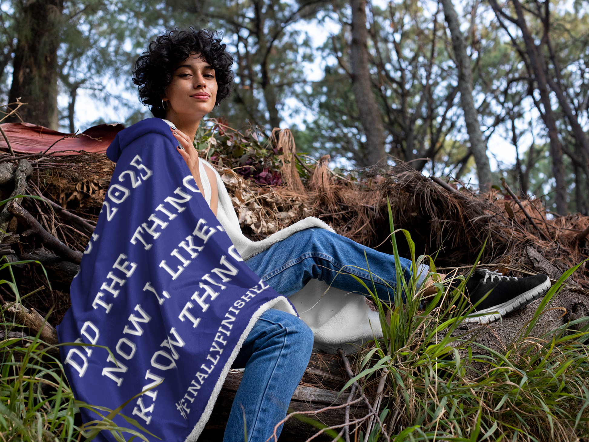 Snuggle up in post-grad glory with this hilarious Class of 2025 hooded Sherpa fleece blanket! Featuring the playful text: “I did the thing. Now I, like, know things. Finally Finished,” this cozy and funny graduation gift is perfect for high school or college grads with a great sense of humor. The ultra-soft fleece and hooded design make it ideal for dorms, Netflix binges, or study sessions. A unique and memorable grad gift idea for students who worked hard—and laughed harder!
