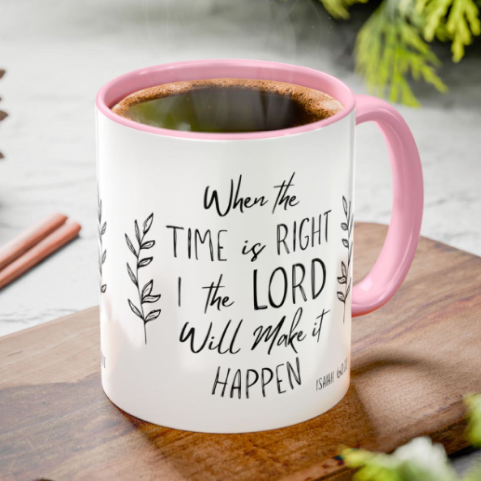 This Isaiah 60-22 Mug features a positive symbol design with vibrant colors, perfect for enjoying your morning coffee or tea. It makes an inspirational gift for her, adding a touch of positivity to her daily routine. Ideal for those who appreciate colorful and uplifting designs, relevant for birthdays, holidays, or as a thoughtful gesture for any occasion.