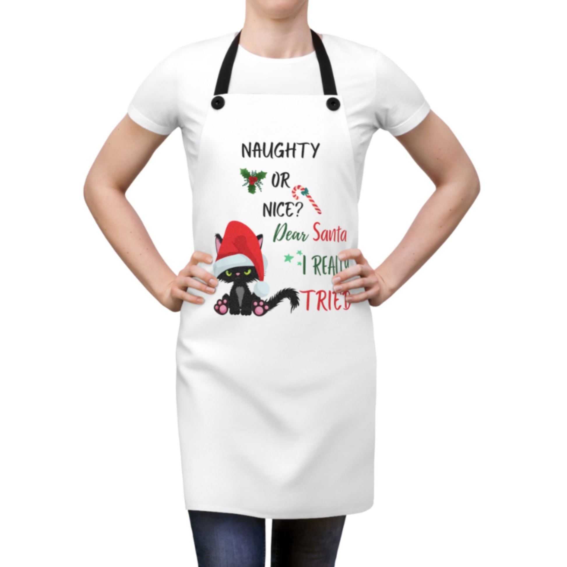 Naughty or Nice Cat Apron | Funny Christmas Kitchen Gift for Bakers