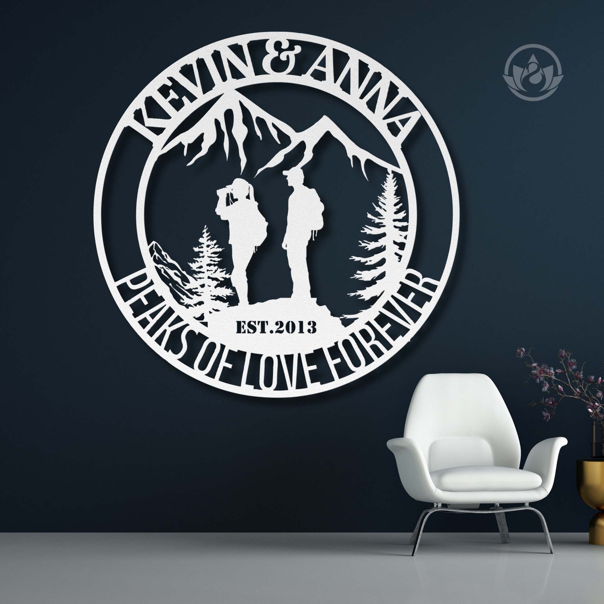 Peaks of Love Forever Metal Wall Art - Custom Mountain Couple's Gift Sign