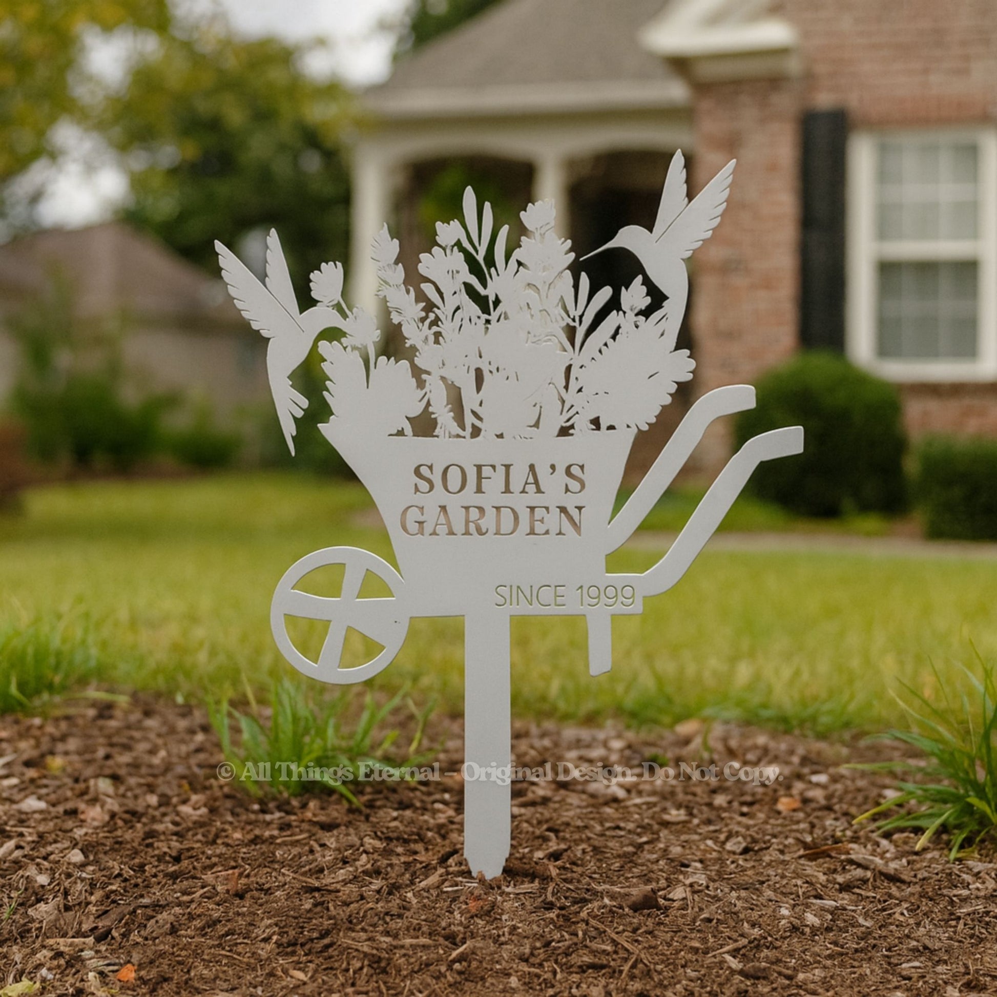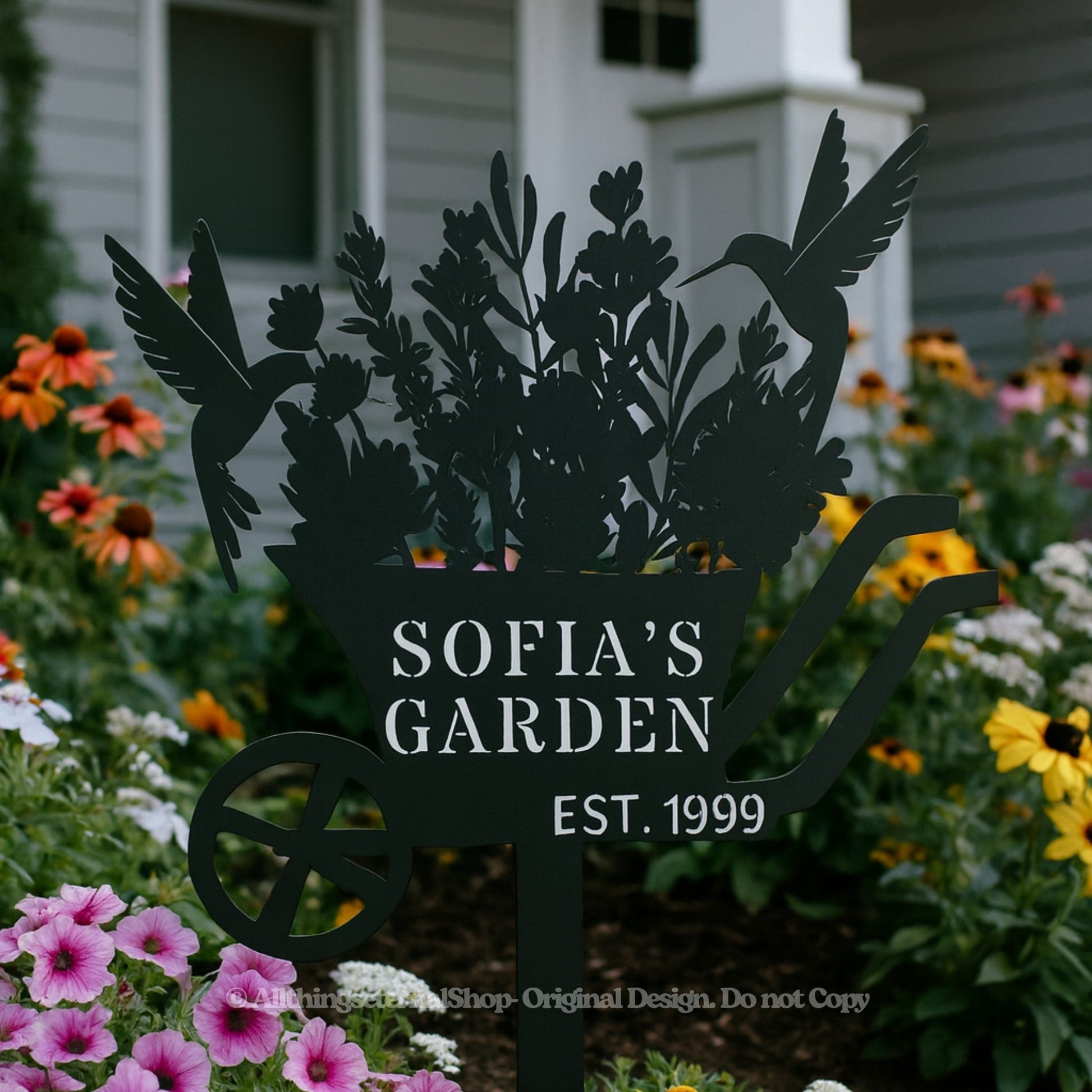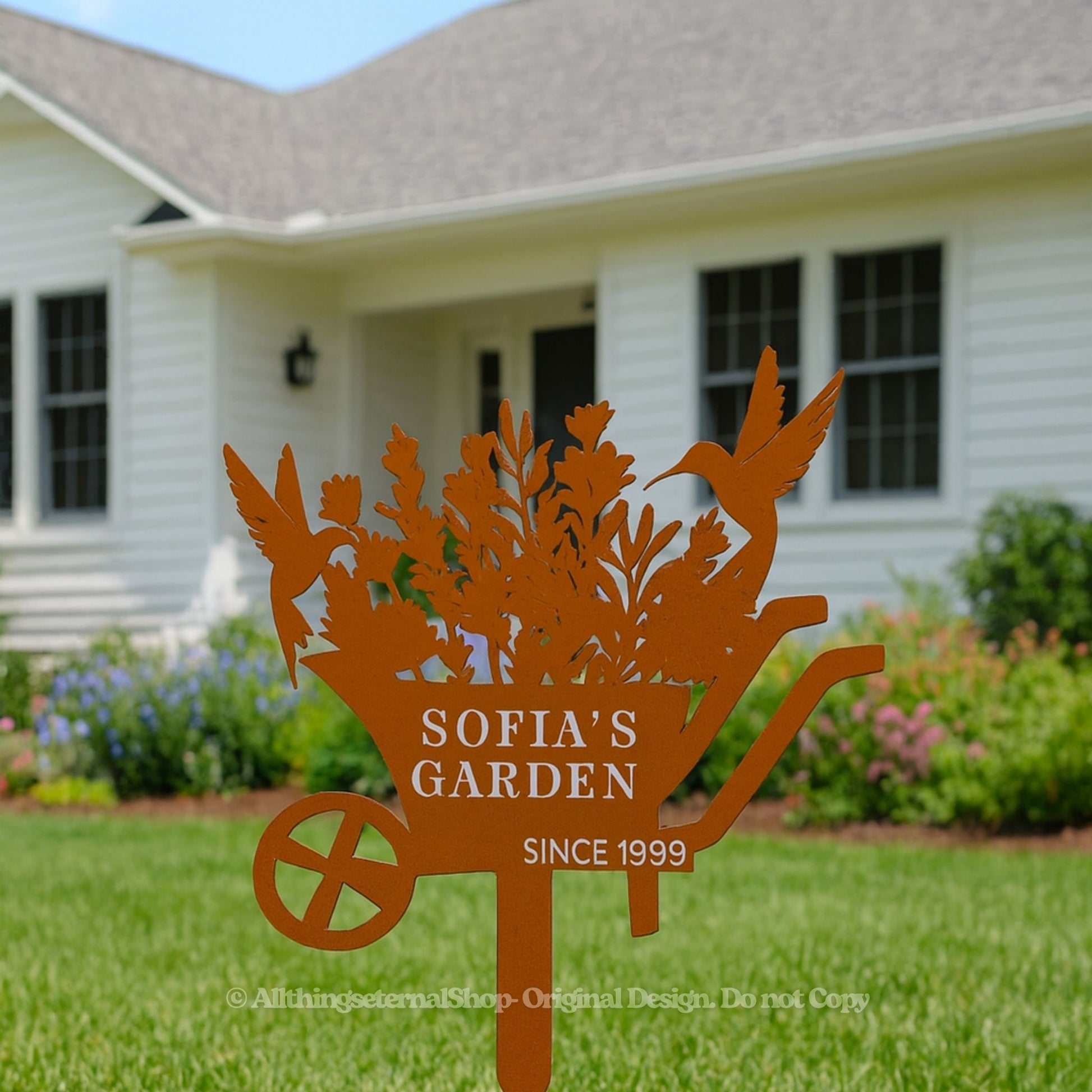 Add a personal touch to your garden with this charming bird and flower metal garden sign. Customizable with your family name, it’s a durable and weather-resistant stake that brings whimsy and elegance to any yard, flower bed, or patio. A perfect gift for gardeners and outdoor enthusiasts.