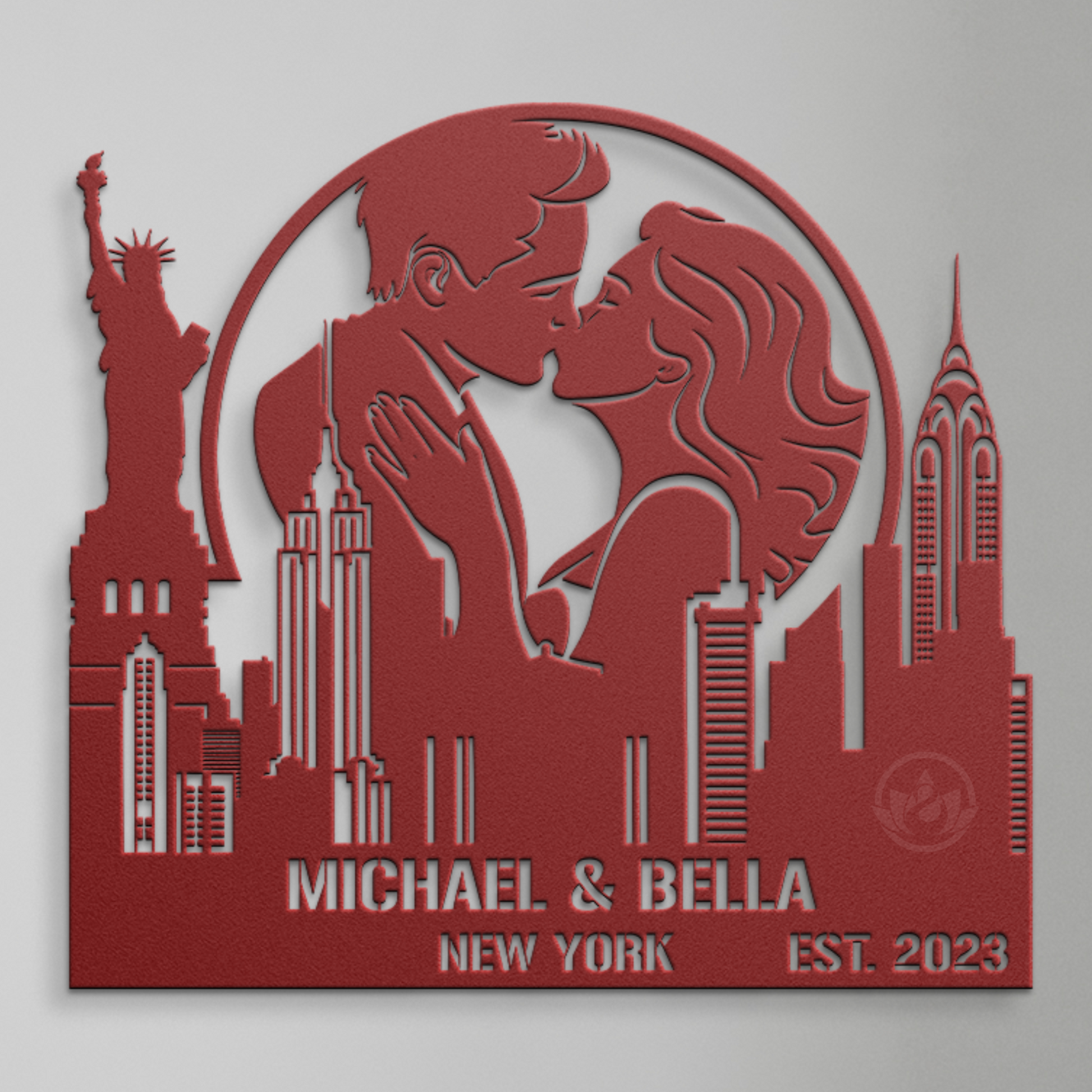 Personalized New York Cityscape Metal Art - Custom Couple Name Gift