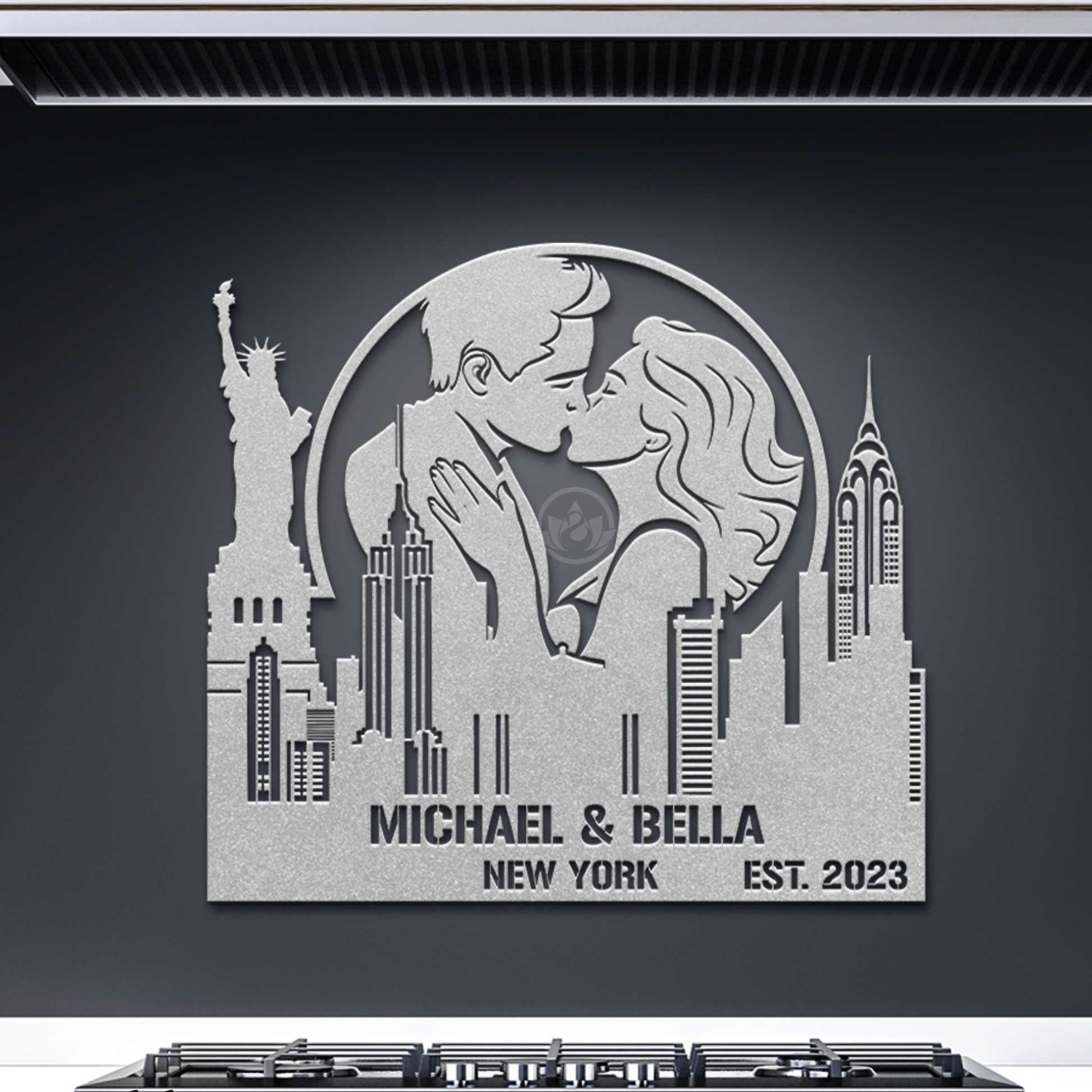 Bring the charm of New York City into your home with our Personalized New York Cityscape Metal Wall Art. This custom metal sign is designed to celebrate your love, featuring your couple's name and special EST date. Perfect as a romantic gift, anniversary present, or unique keepsake for couples who adore the iconic skyline.