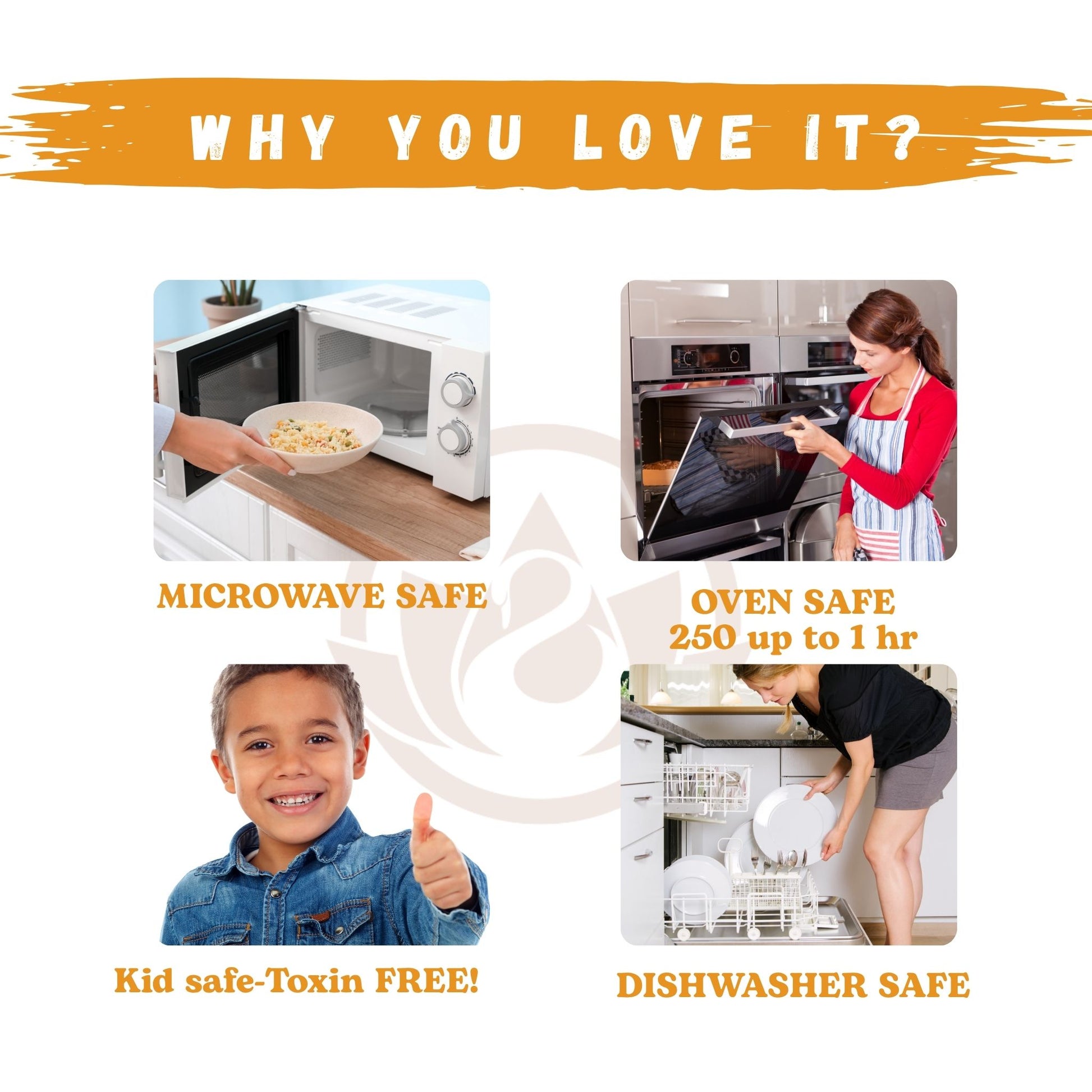 ✔ Oven safe up to 300°F (under 60 min) – great for reheating or serving warm dishes