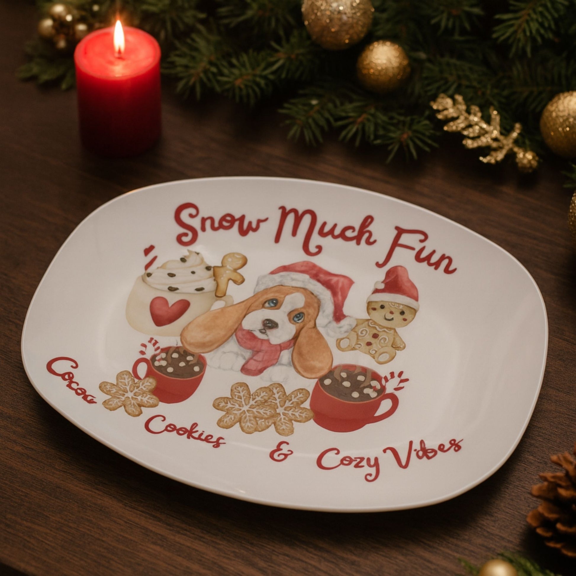 Snow Much Fun Christmas Serving Tray – Cocoa, Cookies & Cozy Vibes
