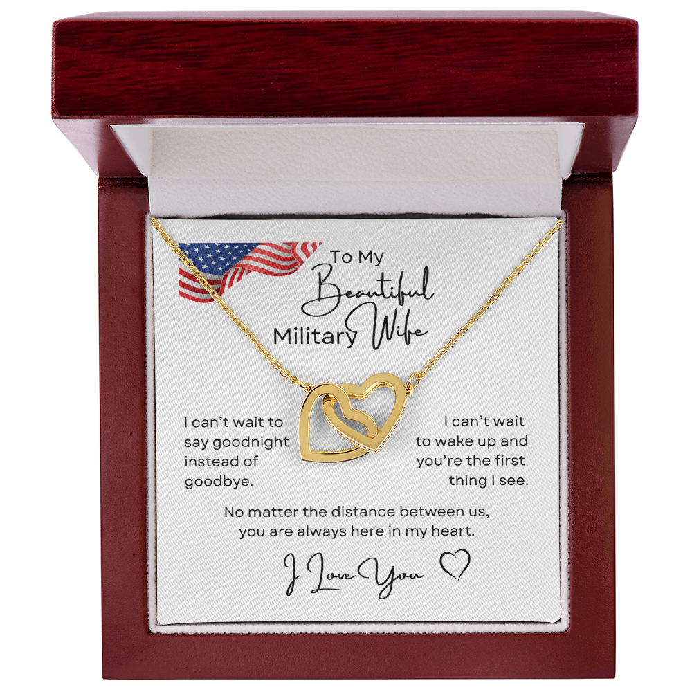 To My Beautiful Military Wife Interlocking Hearts Necklace